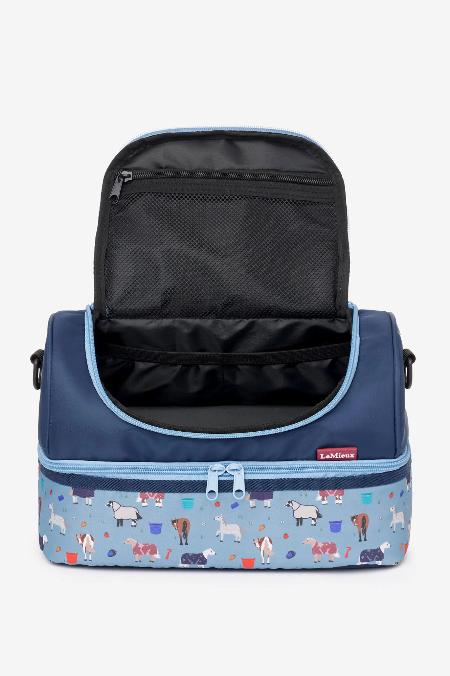 LeMieux Mini allround veske med de søte Mini LeMieux-ponniene er både praktisk og stilig. Den er allsidig og perfekt for dagsturer, pikniker, som lunsjveske, stelleveske eller strigleveske. Med en justerbar skulderstropp med hestesko-mønster og et slitesterkt bærehåndtak i vevd stoff, gir vesken komfort og enkel bruk.Vesken har to rom med glidelås og innvendige lommer, som gir rikelig med plass til å organisere essensielle ting, fra strigleutstyr til tilbehør til lekepoenget ditt. Enten for barn eller ponni-elskere, er denne praktiske vesken et must-have for å holde orden på farten.