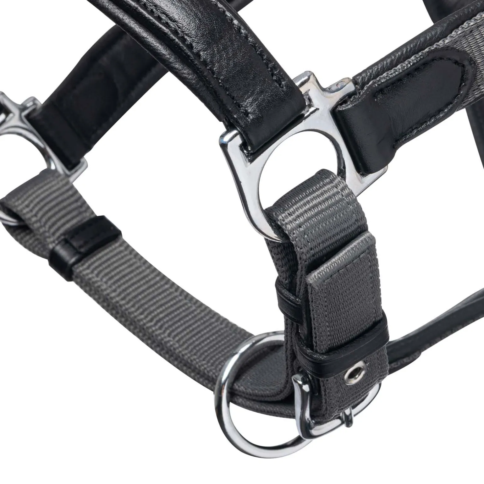Nydelig laget i mykt lær, sterk nylon og solide metallspenner for en stilig utforming i høy kvalitet.Det brede, formede, trykklindrende nakkestykket gir maksimal komfort.Hakestropp, kinnstropper og nesereim er polstret med lær.