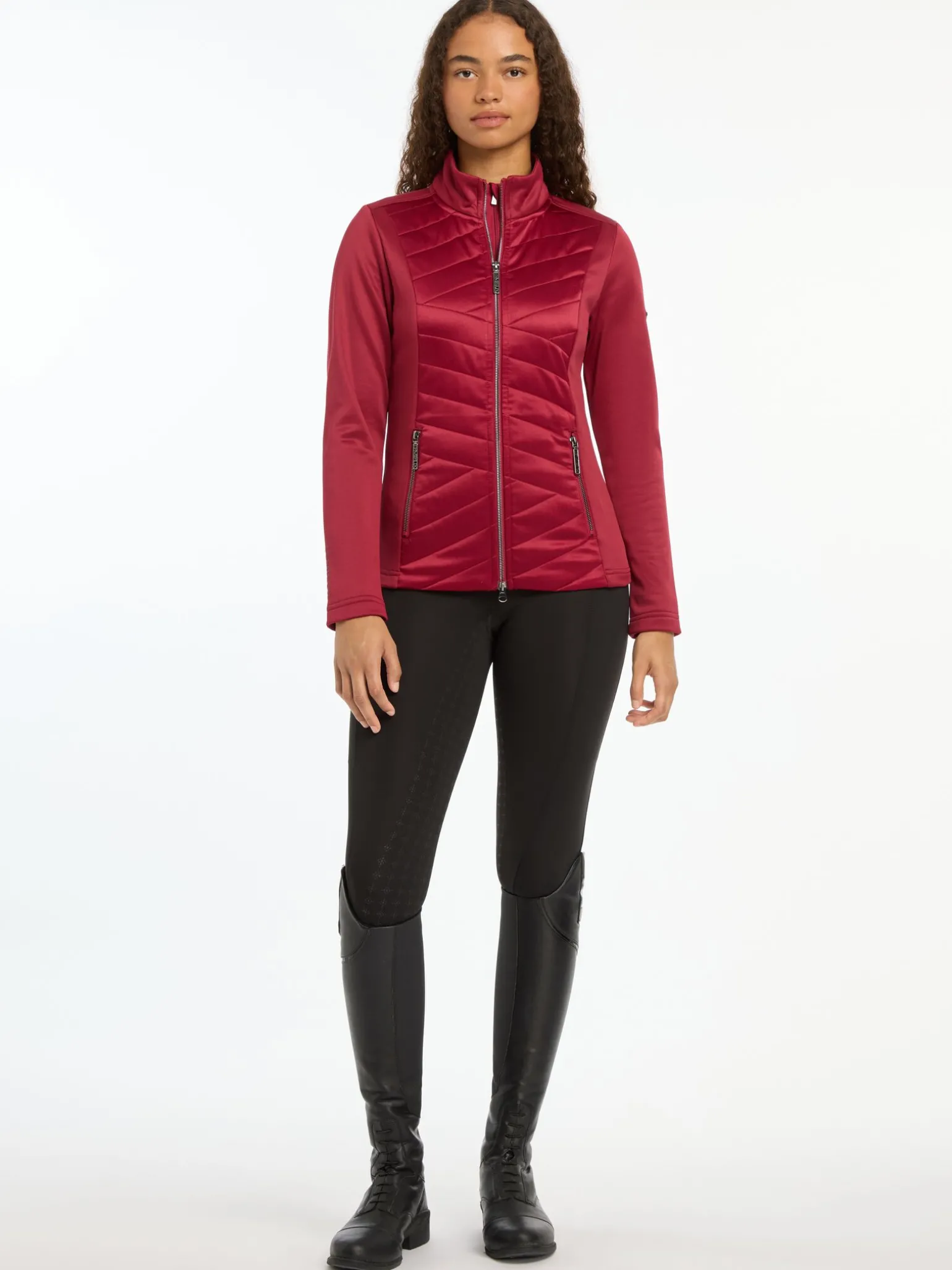 Legg til et snev av stil i garderoben din med den elegante LeMieux Dynamique-jakken. Perfekt for de kjøligere dagene, Dynamique-jakken har et supermykt fôr og polstrede satengpaneler i chevron-mønster.Den formede passformen skaper en flatterende silhuett, mens detaljene på de fremre glidelåslommene, den gjennomgående glidelåslukkingen og LeMieux-merket gir en raffinert finish.