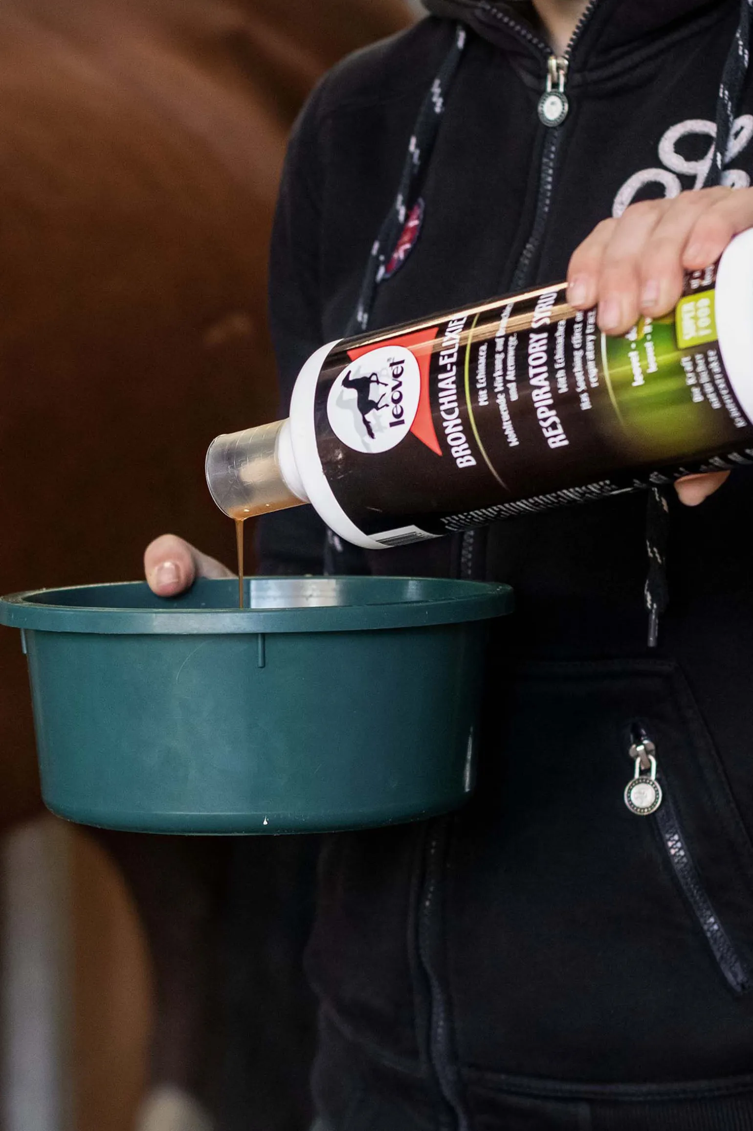 Sammensetning:Vann (77,5%), sukrose (18,7%), planteekstrakter (echinacea, timian, bukkehorn, kastanje, primula, anis, fennikel) (2,9%), timianolje (0,02%).Analytiske komponenter:Ingredienser: råprotein: 0,39 %Råfett: 0,0 %Råfiber: 0,0 %Råaske: 0,25 %Tørrstoff: 24,7 %.Tilsetningsstoffer: 4250mg/kg glyserin (E 422), konservert med kaliumsorbat (E 202) og sorbinsyre (E 200).