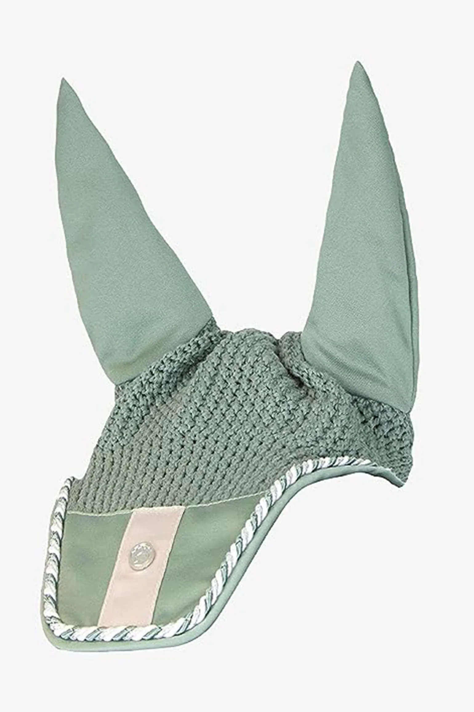 Ørene er elastiske og laget av pustende, antibakterielt, hurtigtørkende materiale.Det elastiske stoffet på ørene gjør at ørehetten vil passe alle typer hester.Det transporterer hurtig fukt og svette bort under hele rittet.Ørehetten har en klassisk, heklet underside, dobbelt kantbånd og den nedre delen av ørehetten er dekket med skinnende, smussavvisende materiale.