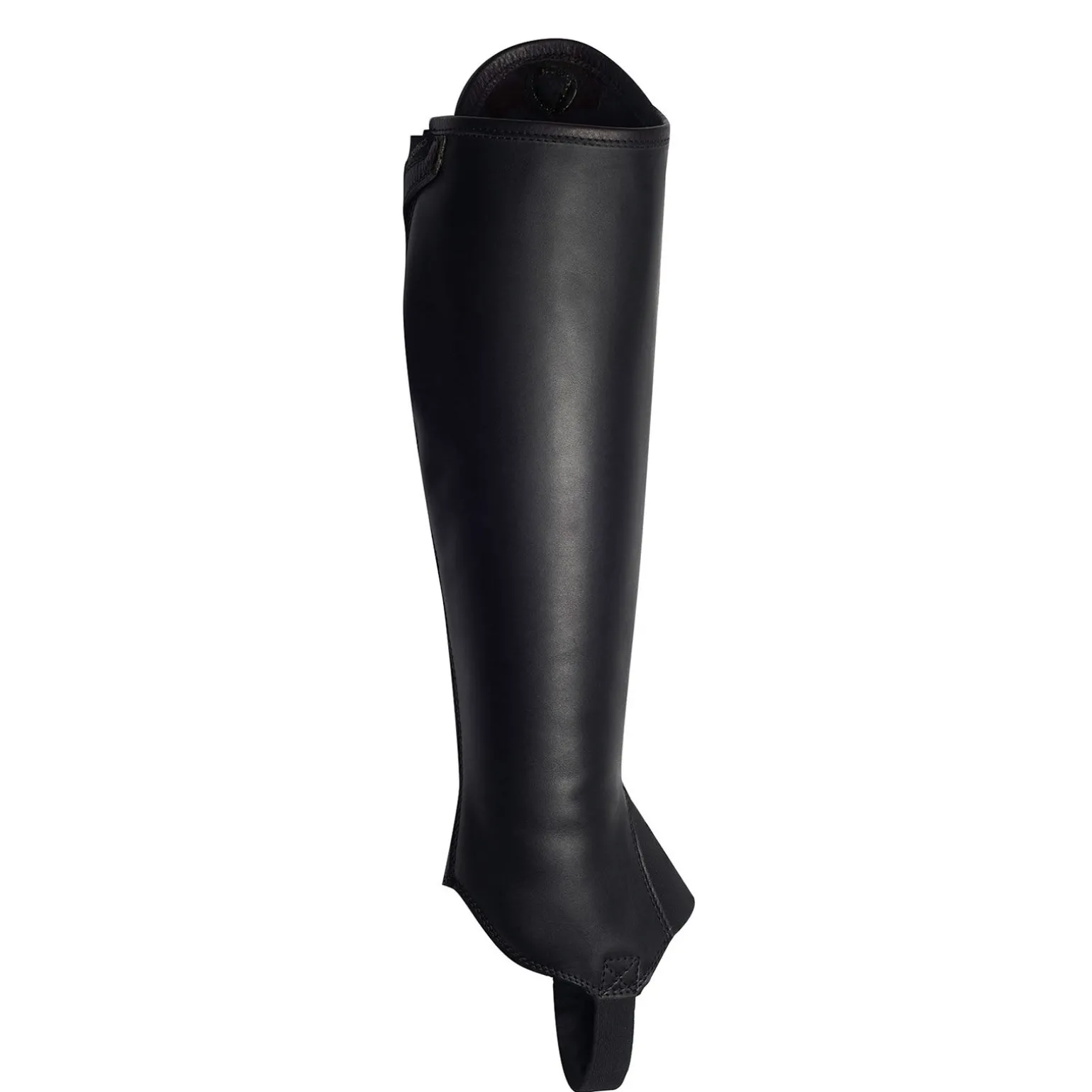 - Anatomisk formet lærflapp bak med elastikk, og logotrykknapp som beskytter glidelåsen under