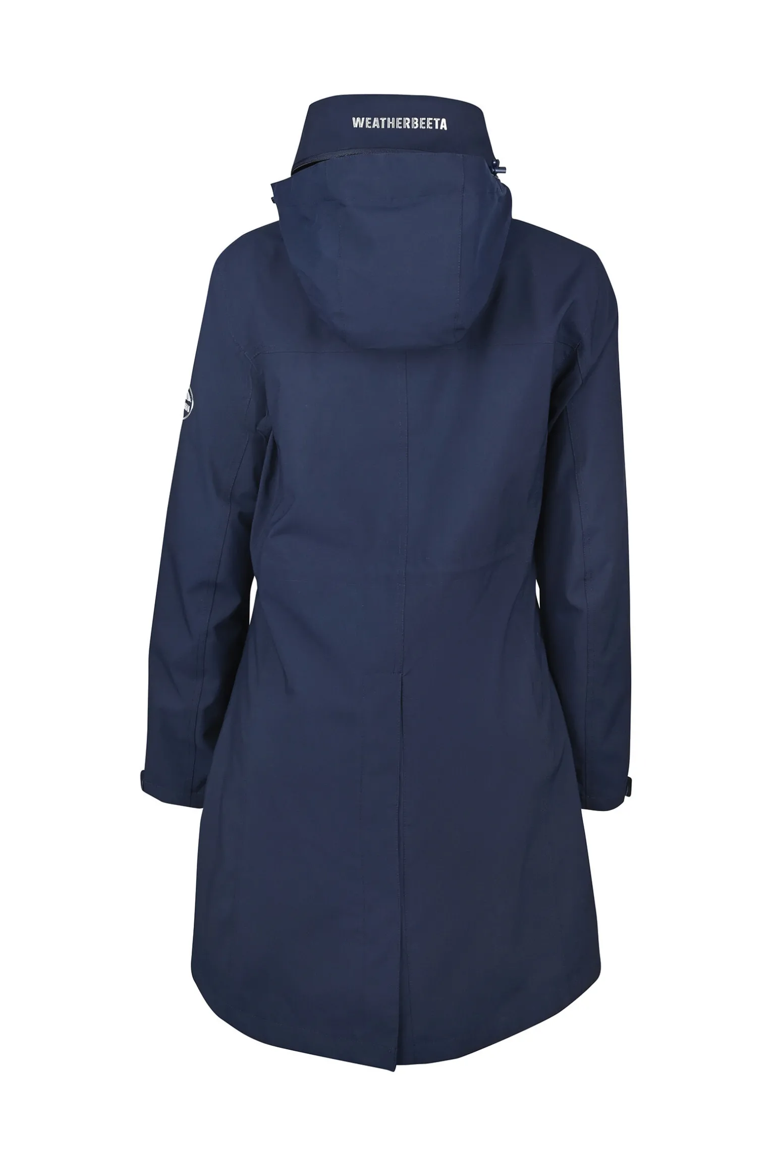 WeatherBeeta Everly Jacket er en teknisk vanntett, vindtett og pustende jakke med forseglede sømmer for optimal beskyttelse Designet med en A-linjeform med bakkant for bevegelsesfrihet, dobbel avtrekker foran glidelås og trykknapper for å lukke. Glidelåsventilene under armene med teknisk mesh gir ventilasjon og komfort. Traktstativkrage med sammenfellbar hette gir beskyttelse mot elementene. Mansjettene har justerbare tapefliker med lengre bakkant perfekt for ridning.