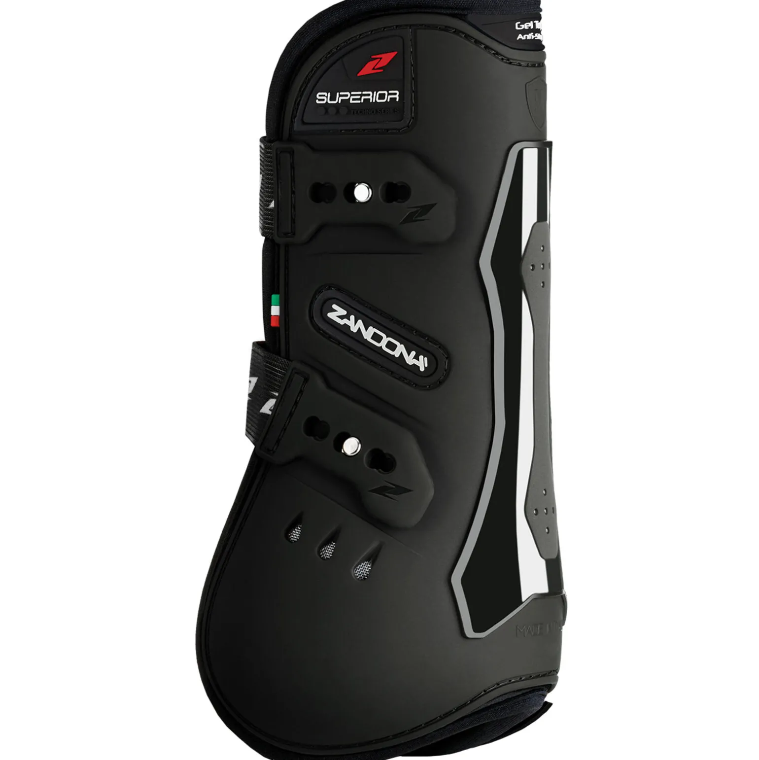 Produsert i Italia. «SUPERIOR senebelegg» er utviklet for å beskytte spranghester fra kollisjoner og blåmerker på forbeinets kode og deler av pipen. Samtidig som den er med å støtte senene. De er laget med en utvendig TPU struktur med differensiert tykkelse, perforert neopren som er ventilert med 6 luftekanaler over koden. Mellom TPU strukturen på utsiden og neoprenen på innsiden finnes det Gel-Tech der det er nødvendig. Den virker støtdempende og gir komfortabel polstring. På innsiden finnes det en flex-sone som er nødvendig for å gi maksimal bevegelsesfrihet for beinet. De elastiske reimene med «quick-release» funksjon er laget for også og sikkert kunne låses, de er utformet med et dobbelt låsesystem (horisontalt / vertikalt). Dimensjonen og den ergonomiske formen er utviklet etter en nøyaktig kopi av beinstrukturen, noe som garanterer en perfekt plassering på beinet.